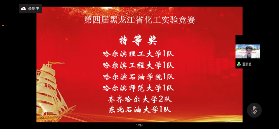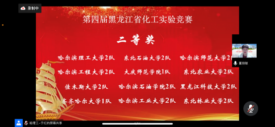 2022年6月18-19日,由黑龙江省化工学会主办,哈尔滨理工大学承办,黑龙江省教育厅高教处、黑龙江省普通高等学校创新创业教育指导委员会支持举办的第四届黑龙江省化工实验竞赛在线上举行,省内哈尔滨工业大学、哈尔滨工程大学、万博max官网等14所高校共计26支队伍参加比赛。我院选派两支队伍参赛,其中孙渤淳、张梓淅、李小研组成的万博max官网1队荣获特等奖,晋级东北赛区,继续向全国总决赛进军。另一支由殷守棋、白如玉、陈怡秋组成的万博max官网2队获得了二等奖。