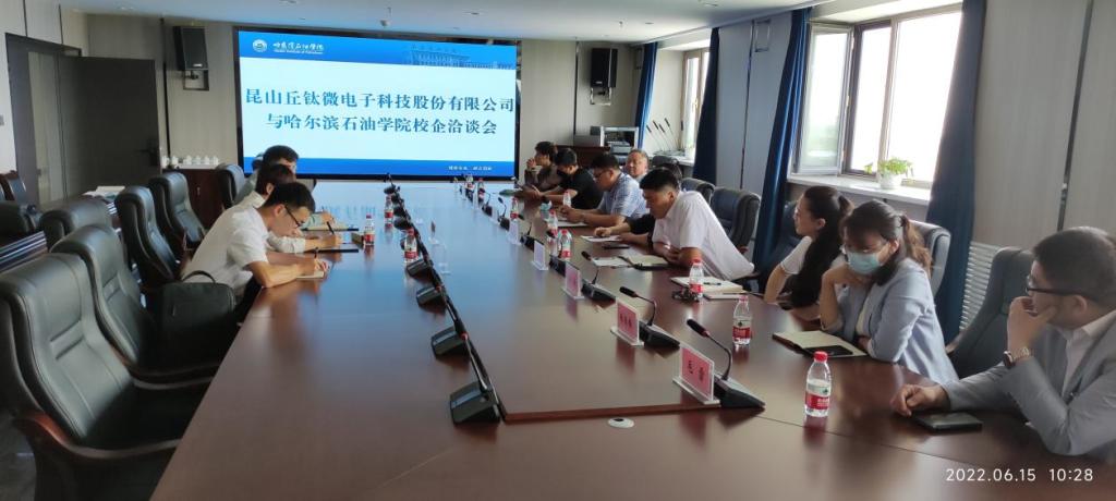 6月22日上午,万博官网在综合楼1515会议室与昆山丘钛微电子科技股份有限公司开展校企合作洽谈会。万博max官网党委书记林立民等校领导、相关部门负责人、各二级学院院长、党总支书记、昆山丘钛微电子科技股份有限公司人事行政体系总监乐燕芳、校企合作事业部经理王金超、校企合作事业部高级专员郝凯峰出席了此次会议