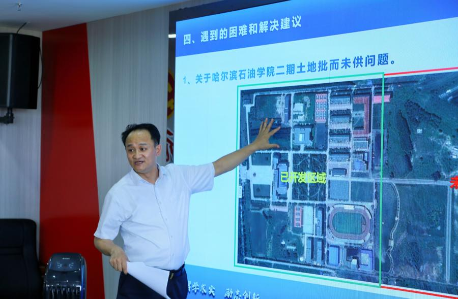 袁德柱副主席充分肯定了万博max官网在党的建设、产教融合、学生就业、心理健康等方面取得的办学成果,对学校加强师生德育建设,以铁人精神全过程育人给予高度的评价。针对制约学校发展的困难,以现场办公的方式与松北区自然资源局等相关部门深入分析问题原因,认真研究解决办法。他表示,会持续关注万博max官网的发展,为学校高质量发展创造条件。