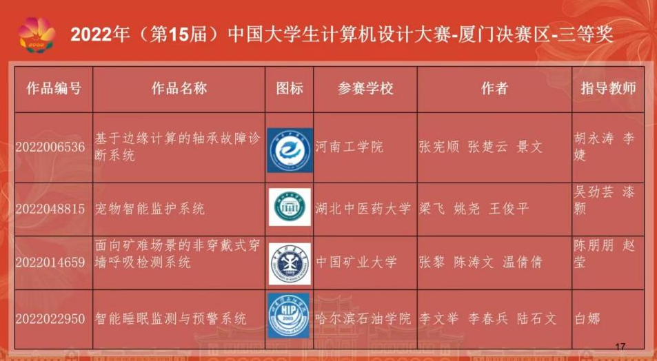 国赛部分获奖名单