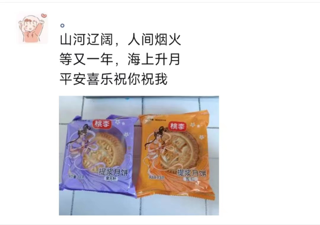 中秋佳节,品尝月饼。学校精心地为每名同学准备了中秋月饼。当一块块月饼发放到同学手中时,温暖也如“月”而至。