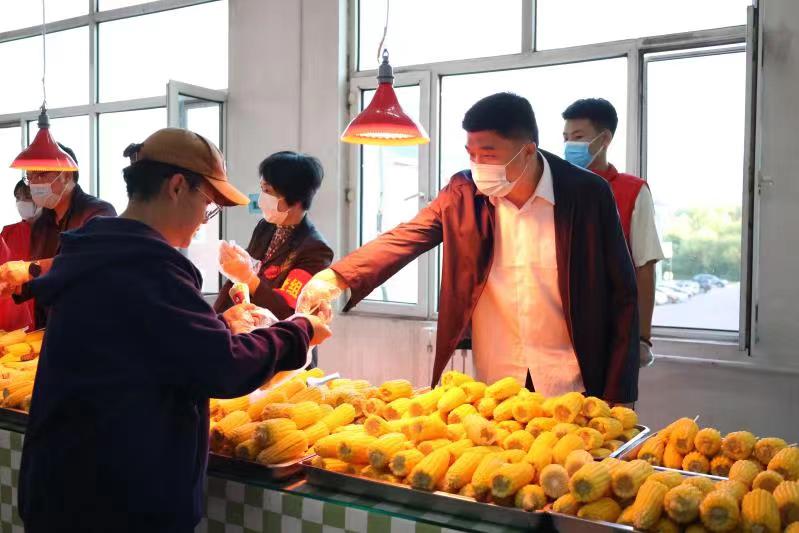 一车车学生亲手采摘的玉米被送到学校的食堂,食堂阿姨在煮好玉米后,送到了同学们的手中。这一锅锅热气腾腾的金黄玉米,映照着对同学们满满的关爱。