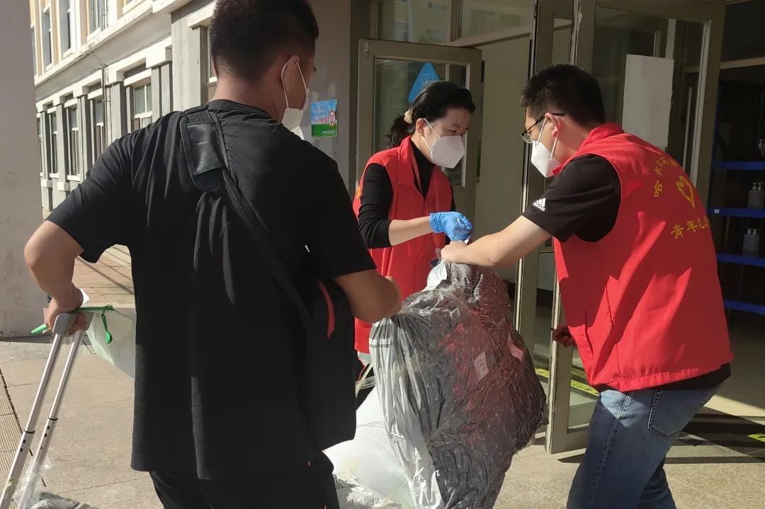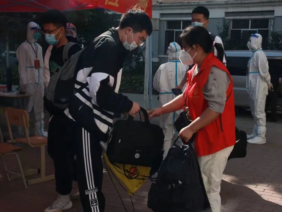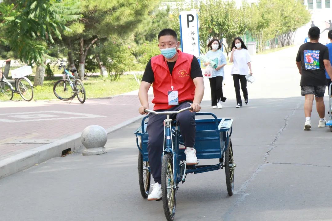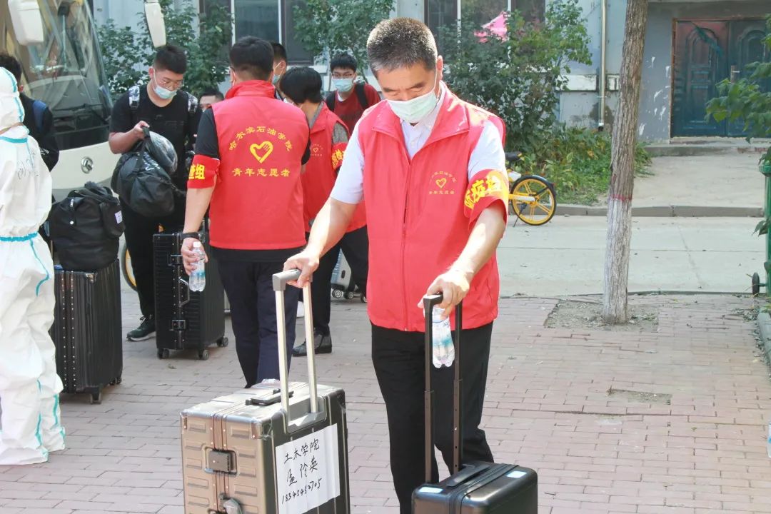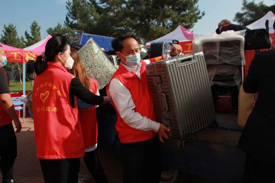 党员干部专门身着红色马甲,佩戴党员徽章和工作牌。随车接站、宣传引导、物资配送、行李运送、组织核酸检测,一切迎新工作井然有序。提在手上的一件件沉重的行李,一句句暖心的关怀,一份份清晨的早餐,一件件生活的用品,特殊时期,他们用特别的方式拉开了师生之间的故事序幕。这一抹抹的“党员红”成为了新生的“定心丸”,点亮了整个哈油校园,传递了哈油温度,也诠释了党员教师的初心和使命。