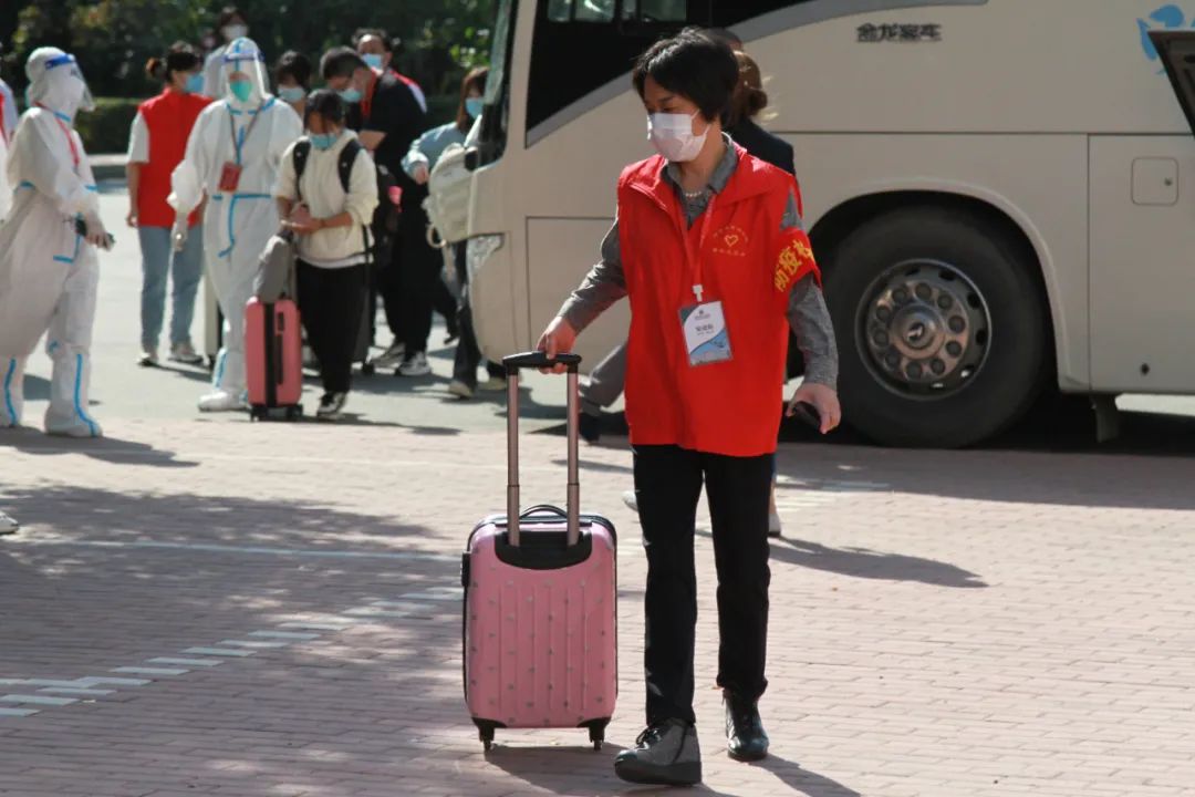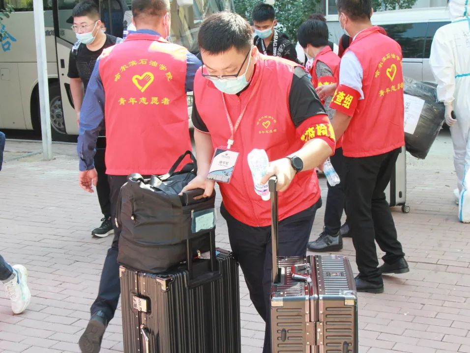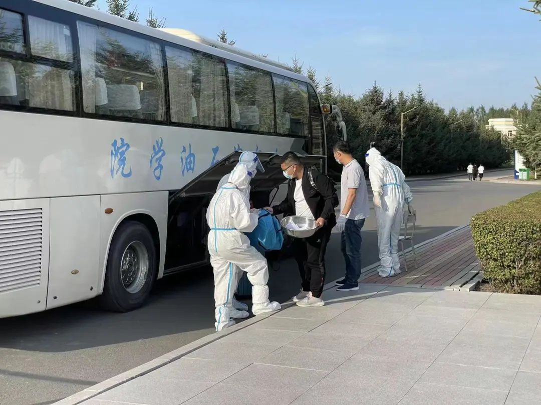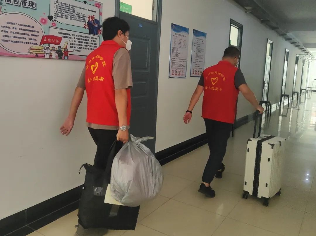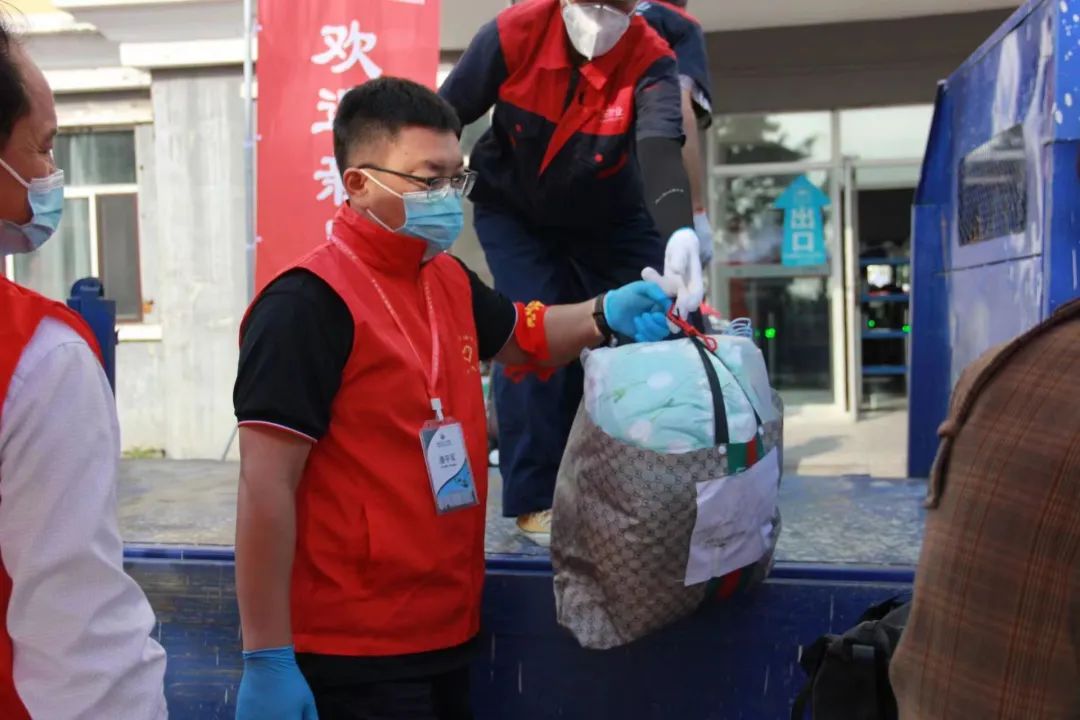 党员干部专门身着红色马甲,佩戴党员徽章和工作牌。随车接站、宣传引导、物资配送、行李运送、组织核酸检测,一切迎新工作井然有序。提在手上的一件件沉重的行李,一句句暖心的关怀,一份份清晨的早餐,一件件生活的用品,特殊时期,他们用特别的方式拉开了师生之间的故事序幕。这一抹抹的“党员红”成为了新生的“定心丸”,点亮了整个哈油校园,传递了哈油温度,也诠释了党员教师的初心和使命。