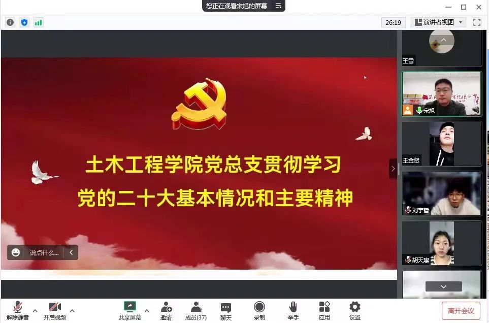 为深入学习宣传贯彻党的二十大精神,凝聚队伍共识,激发为党育人、为国育才的内在动力。近日,万博官网土木工程学院党总支在线上组织召开学习贯彻党的二十大精神宣讲报告会。