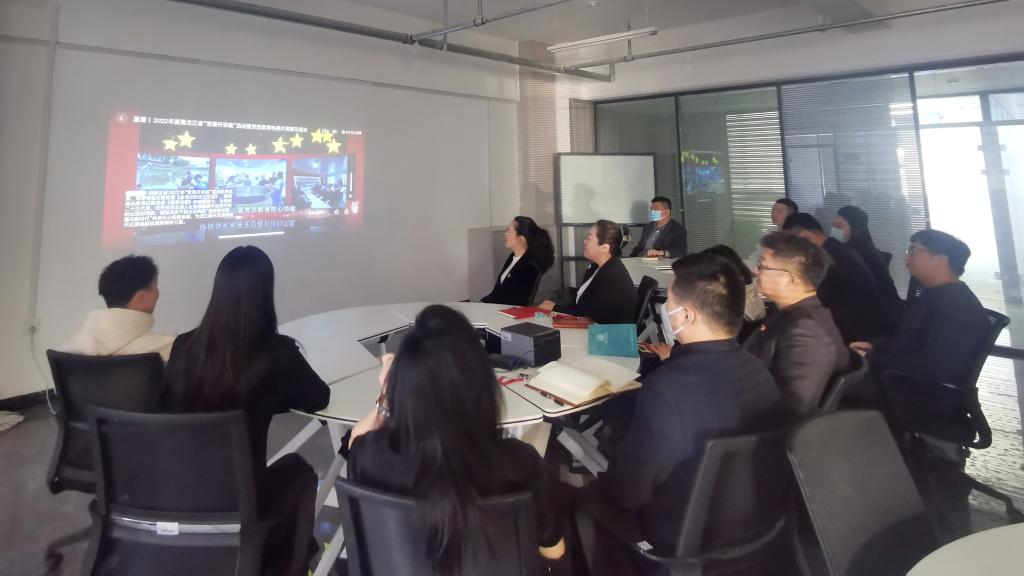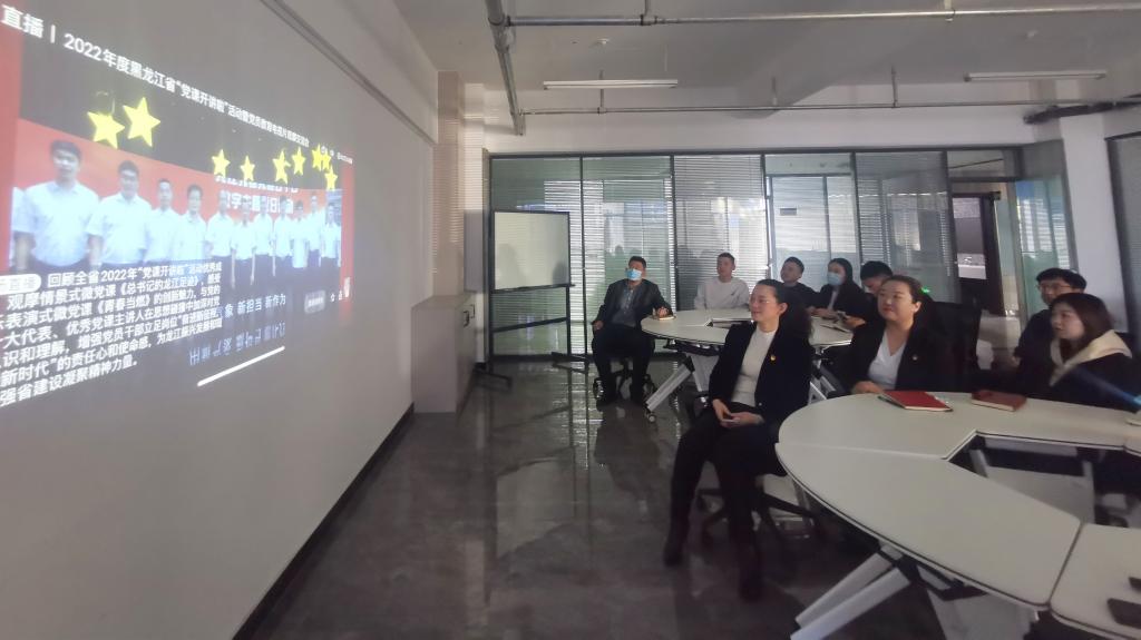 2023年2月24日9时,由中共黑龙江省委组织部主办,黑龙江广播电视台承办的2022年度全省“党课开讲啦”活动暨党员教育电视片观摩交流会在黑龙江广播电视台举行。万博max官网机关第二党支部在综合办公楼0111会议室组织全体党员学习观看。