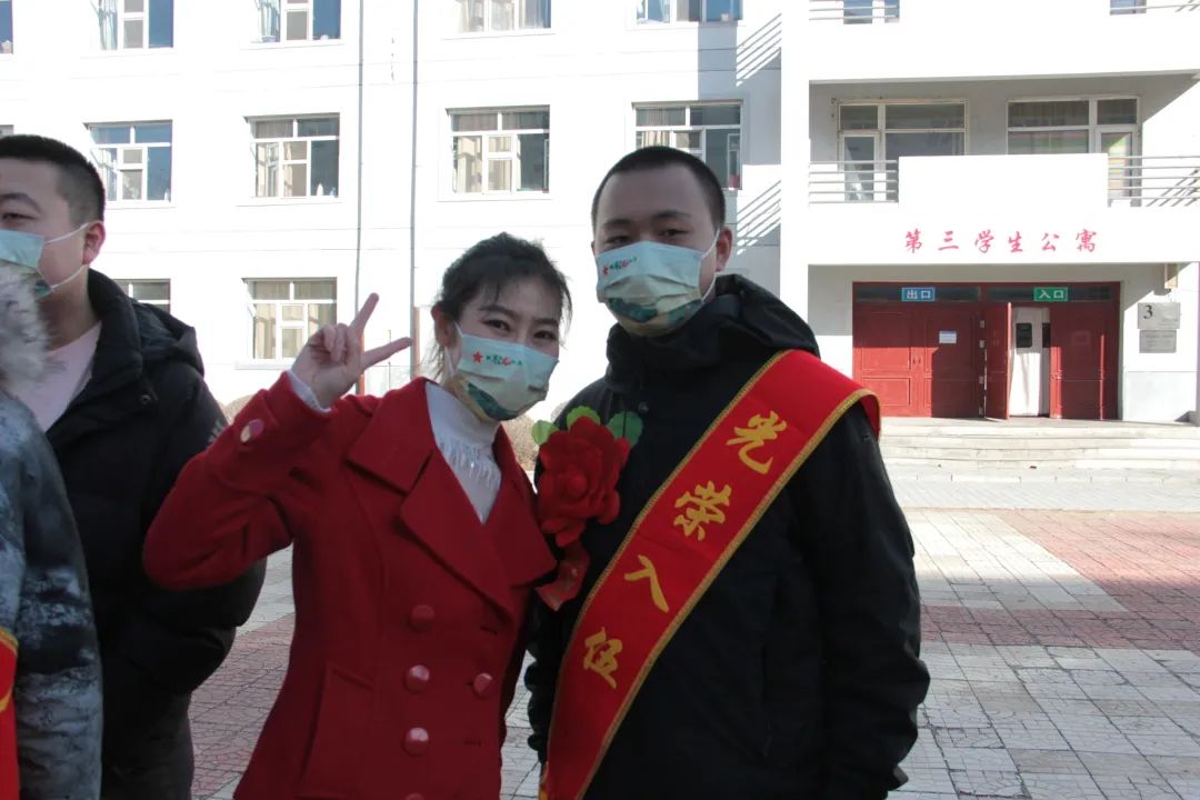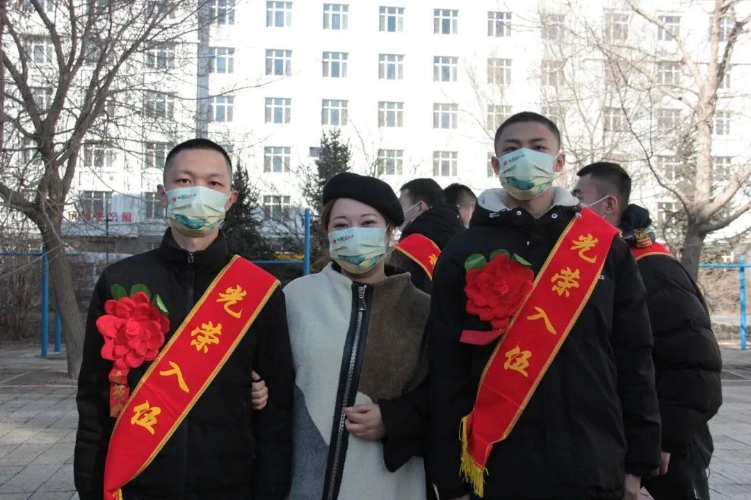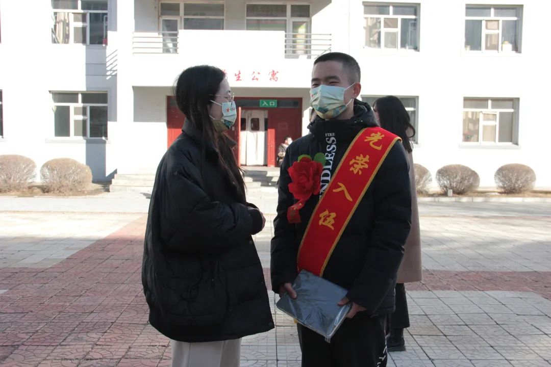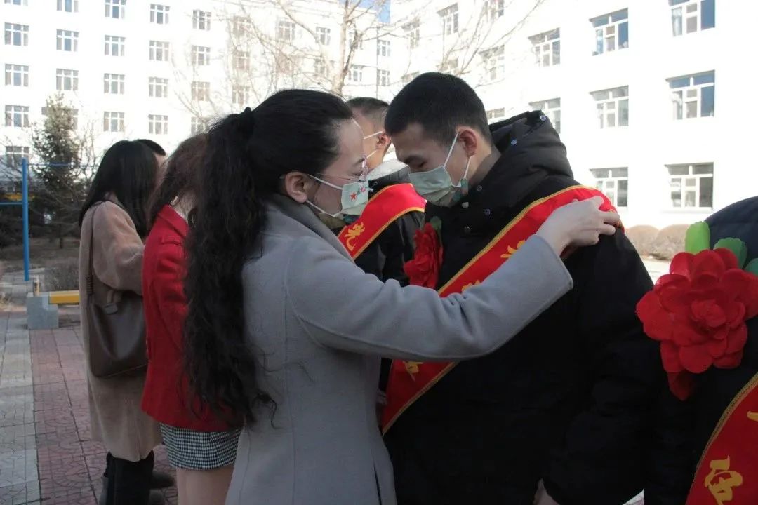 现场,学校领导、老师为光荣入伍的优秀青年佩戴大红花、光荣入伍绶带并赠送慰问品和纪念品。