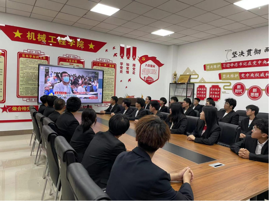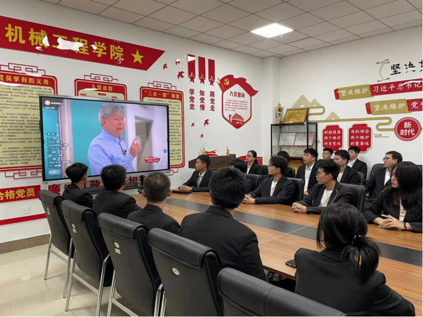 为深入学习贯彻习近平新时代中国特色社会主义思想主题教育,以学铸魂、以学增智、以学正风、以学促干,书写新时代、新征程教育高质量发展新篇章。2023年6月14日16时,机械工程学院组织全体学生党员在主教学楼414观看高校党组织示范微党课展播第一讲。
