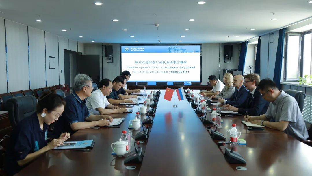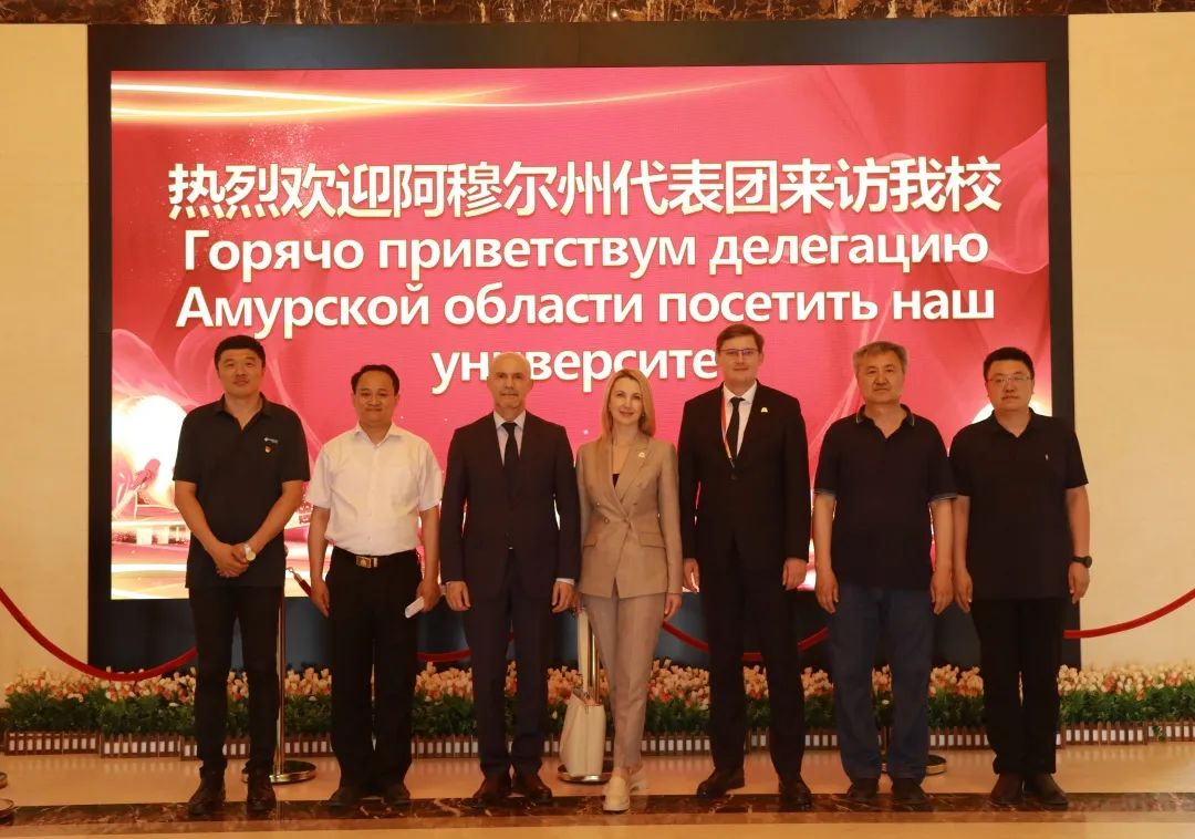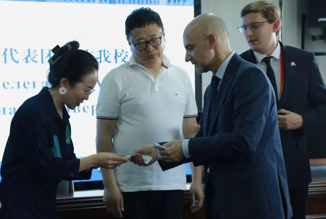 2023年6月16日下午,俄罗斯阿穆尔国立大学校长普鲁琴科·安德烈·多利耶维奇、阿穆尔州政府副主席普赞诺夫·帕维尔·伊格里耶维奇、阿穆尔州招商局局长捷姆琴科·奥莉加·格娜季耶夫娜等一行五人组成的代表团到万博官网参观访问,党委书记林立民,党委副书记、副校长冯研,副校长胡文,校长助理康平军,国际教育学院院长周瑞等人接待,并与对方进行亲切会谈。