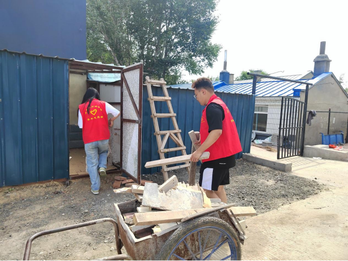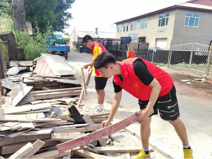 活动中,志愿者们用实际行动践行了志愿服务的精神,帮助农村群众解决实际问题,提供支持和帮助。志愿者们帮助村民收拾木材,让村民的院子更加整齐。