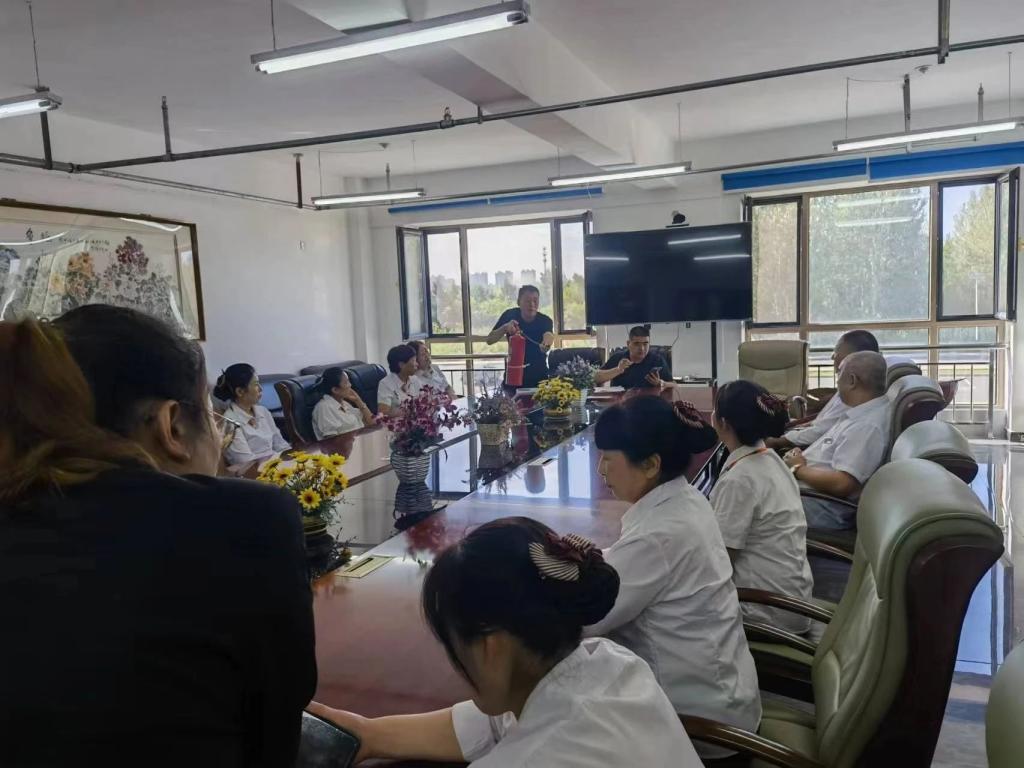 会上,赵胜林、王岗组织与会人员进行消防安全技能培训,他们首先介绍了火灾基本类型和应对处理紧急情况的基本做法,随后讲解并演示了消防设备的使用方法。