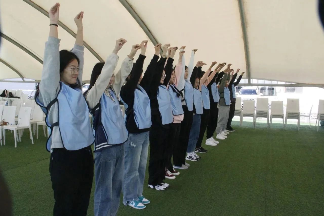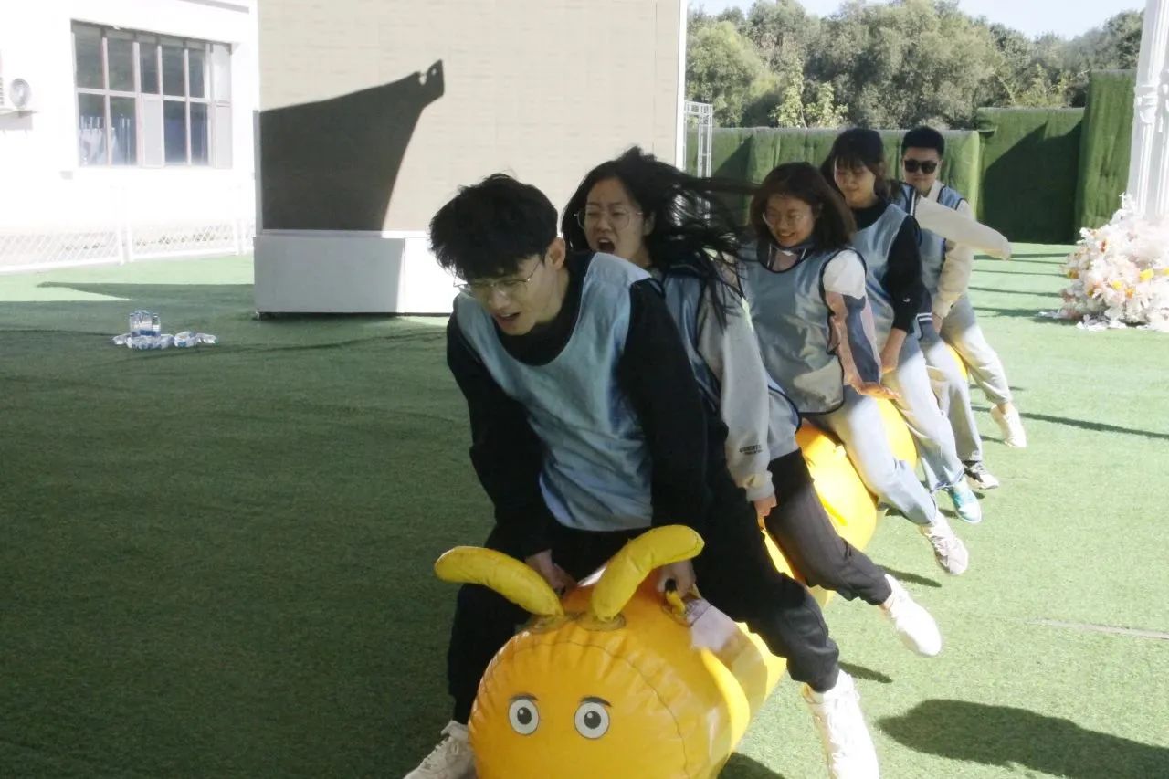 活动中,新教工积极参与,全情投入,在完成了破冰热身活动后,教师们被分为2组,在队长的带领下分别为自己的队伍设计队名、队旗,拉开了拓展训练的序幕。实践活动包含团队风采展示、毛毛虫竞赛、超级障碍、团队七巧板等多个团队拓展项目,队员们迅速进入状态,大家创新思维、有效合作,完成了各项任务。