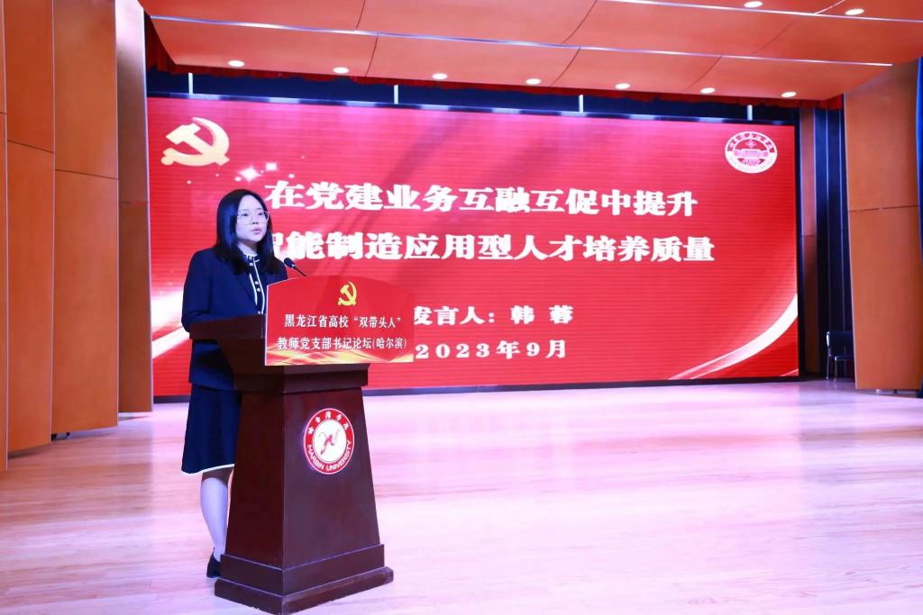 2023年9月27日,黑龙江省高校“双带头人”教师党支部书记论坛(哈尔滨)在哈尔滨学院举行,12所在哈高校“双带头人”教师党支部书记作了主旨发言,万博官网智能工程学院教师党支部书记韩蓉进行了交流发言,其他基层党组织书记在万博官网分会场进行了线上集中学习。