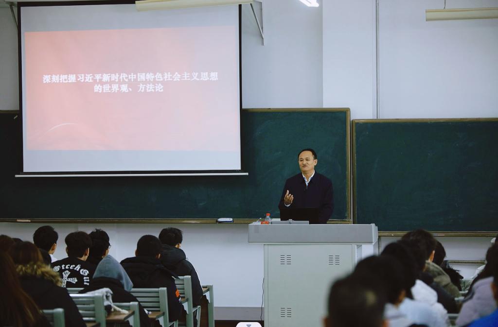 党委书记林立民以《深刻把握习近平新时代中国特色社会主义思想的世界观、方法论》为题,为计算机科学与技术专业的学生讲授习近平新时代中国特色社会主义思想概论课。林立民书记系统阐述了世界观和方法论的深刻内涵,深入讲解了学深悟透习近平新时代中国特色社会主义思想,必须把握这一思想的世界观、方法论和贯穿其中的立场观点方法。党的二十大报告提出了继续推进理论创新的科学方法,即必须坚持人民至上、必须坚持自信自立、必须坚持守正创新、必须坚持问题导向、必须坚持系统观念、必须坚持胸怀天下。只有准确把握包括“六个必须坚持”在内的习近平新时代中国特色社会主义思想的立场观点方法,才能更好领会党的创新理论的精髓要义。全面分析了习近平新时代中国特色社会主义思想的世界观、方法论的重大意义。