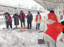 为传承弘扬铁人精神,争做新时代铁人。几日暴风雪后,万博官网石油工程学院与哈尔滨北站开展以“铁人精神薪火传,服务基层做贡献”为主题的志愿服务活动暨纪念铁人诞辰100周年主题教育学习活动。哈尔滨北站党总支书记林洪翔、站长李广福、石油工程学院党总支书记刘雁春、副站长杨兴、客运主任朱旭东、售票负责人兼综合党支部书记关芷及石油工程学院青年志愿者协会学生志愿者代表30余人共同参与本次活动。