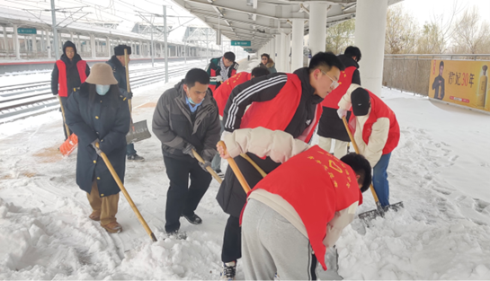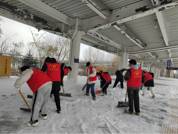 战北风,清冰雪,志愿者们不畏严寒,个个争当除雪保畅的“排头兵”。经过志愿者的团结协作,很快清扫出了“安全通道”,高标准完成本次志愿服务活动。迎雪而动战一线,志愿服务映初心,石油工程学院在学校党委的正确领导下,不断完善“党建与业务工作深度融合1+8工作模式”,充分发挥党员、团员的先锋模范作用,不忘初心,在关键时刻能够发挥好带头作用,积极参与各类志愿服务活动,在为基层解忧中亮身份、见行动、作贡献,用诚挚热情和实际行动赓续铁人精神,将铁人精神薪火相传,体现出哈油人良好的精神风貌,得到哈尔滨北站领导的一致赞誉。