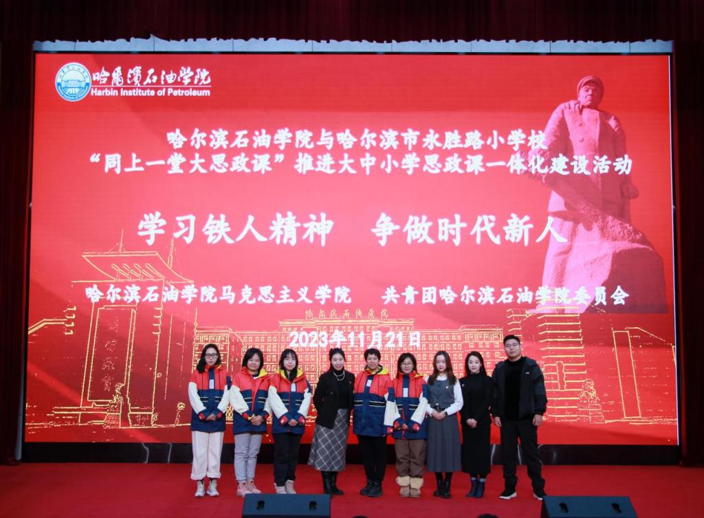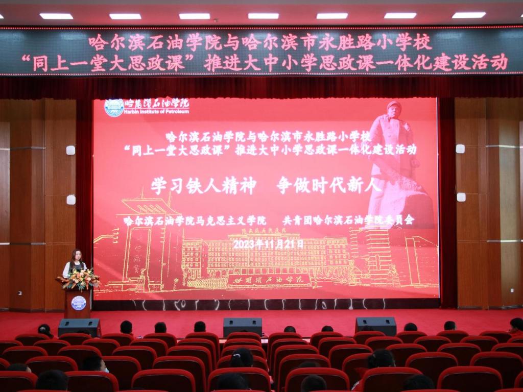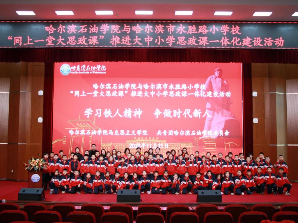 2023年11月21-22日,万博max官网与哈尔滨永胜路小学联合开展校外实践暨“同上一堂大思政课”推进大中小学思政课一体化建设活动。马克思主义学院部分教师、校团委教师、部分校级青马班学员及永胜路小学校120余名少先队员一同参加了“同上一堂大思政课”活动。