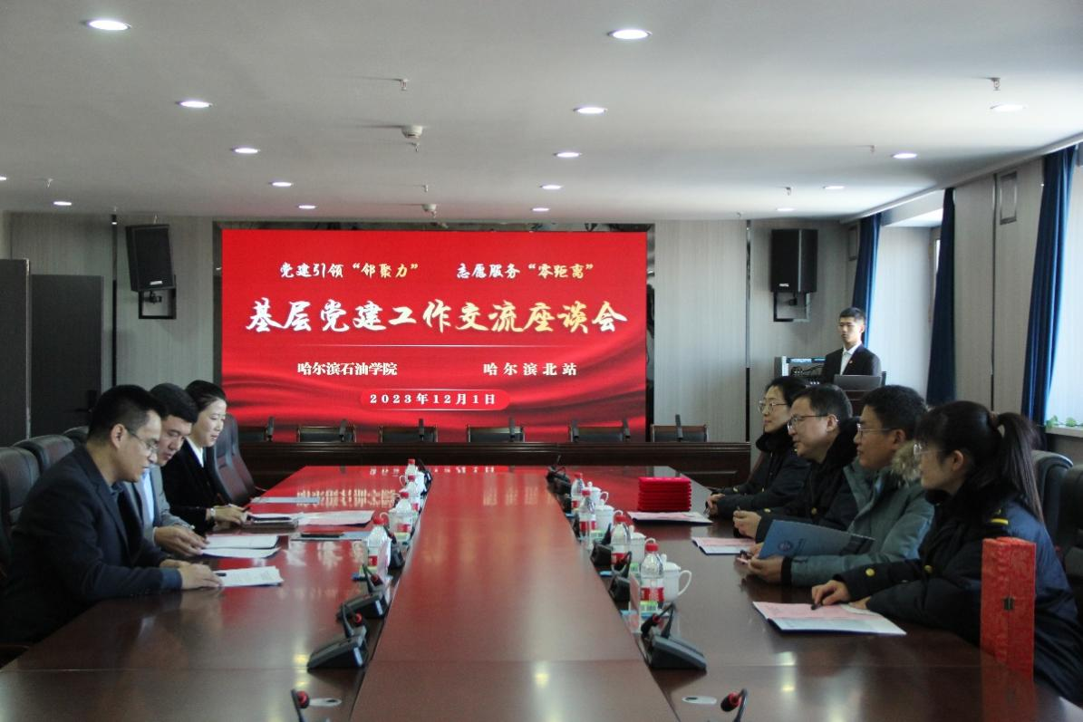 座谈会上,党委副书记、副校长冯研对哈尔滨北站领导一行到来表示热烈欢迎,并对万博官网办学历史、办学理念及教育教学取得的成就等作详细介绍。他表示,学校注重加强大学生思想政治工作和教育管理,紧扣应用型本科高校办学要求,持续推进内涵发展和特色发展,着力培养适应区域行业经济社会发展的高素质应用型人才。希望以本次基层党建交流为契机,进一步加强友邻单位之间互联互通,加强党建交流凝聚合力,互学互鉴共促提升。