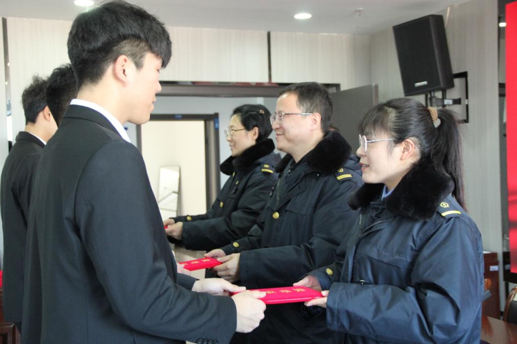 哈尔滨北站书记林洪翔为优秀志愿者代表颁发荣誉证书。