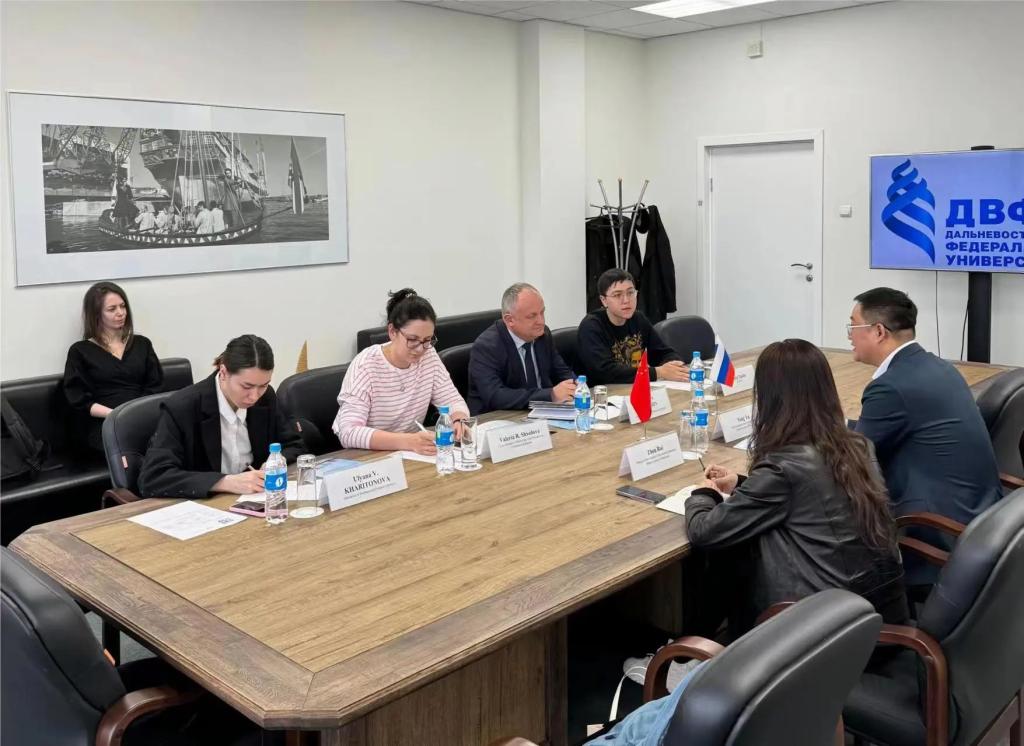 为全力打造教育向北开放新高地,进一步探索与俄罗斯高校教育合作新模式,应俄罗斯远东国立艺术学院、远东联邦大学、远东国立水产技术大学、符拉迪沃斯托克国立大学等高校邀请,4月14日—18日,学校副校长佟宇、国际教育学院院长周瑞一行赴俄罗斯开展校际交流访问,与合作高校深入推进2+2本科联合培养、教师访学、学生交流、学生学历提升、共建课程、联合实验室等领域的合作交流。