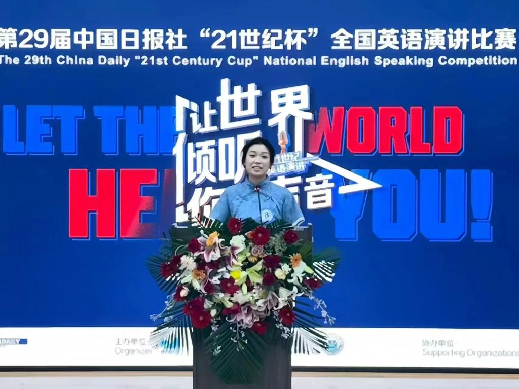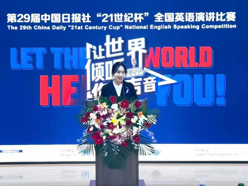 “21 世纪杯”全国英语演讲比赛由中国日报社于1996年发起并主办,旨在提高中国青年讲好中国故事的能力水平,培养中国青年学生的国际交流能力,为加强我国国际传播能力建设、促进文明交流互鉴、推动构建人类命运共同体凝聚青春力量。