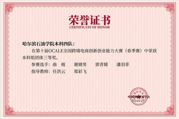 4月27日,由中国国际贸易学会举办的第十届OCALE全国跨境电商创新创业能力大赛(春季赛)顺利结束,万博官网学子凭借出色的表现,荣获本科组团体三等奖。