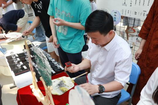 本次开幕式上,校长王义宁,党委书记林立民,党委副书记、纪委书记刘铎,党委副书记、副校长冯研,副校长佟宇,校长助理康平军,校长助理宁晶,智能工程学院院长王俊发共同为此次展览揭幕,为工业设计18周岁庆生,并一道欣赏参展作品,体验非遗文化漆扇、掐丝珐琅制作。