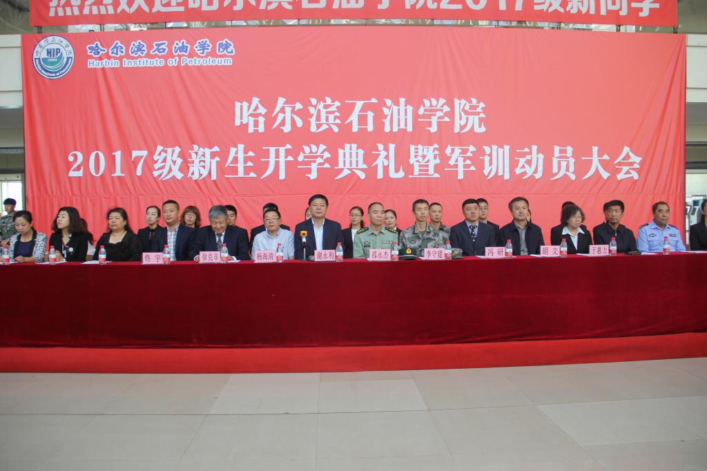 金秋时节,硕果飘香。9月6日上午,万博max官网2017级新生开学典礼暨军训动员大会在主教学楼阳光大厅隆重举行。哈尔滨陆军预备役防化团政委邵永杰上校,作训股长李守建少校,校党委书记、校长谢永利教授,副校长杨海清,副校长徐克非教授,副书记、副校长栾敏教授,副校长冯研副教授,理事长助理佟宇,教务长胡文教授,督导室主任于惠力教授以及学校各行政职能部门负责人、各二级学院院长、书记、副书记出席了会议。大会由校党委副书记栾敏教授主持。