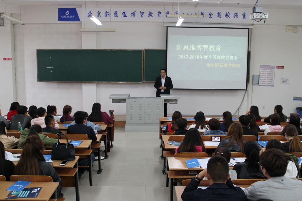 为了给毕业生们提供更好的就业机会,帮助企业寻找人才,2017年9月26日,北京新思维博智教育集团2018届全国校招宣讲会在万博官网主教517举行。新思维博智教育集团校长李建宇、张玲作为外语学院特邀嘉宾出席,外语学院院长王莉娅,副院长高丽娜,办公室主任田佳良和辅导员赵连琦出席本次活动。万博官网大四的毕业生们积极参加了此次招聘会,全场座无虚席。