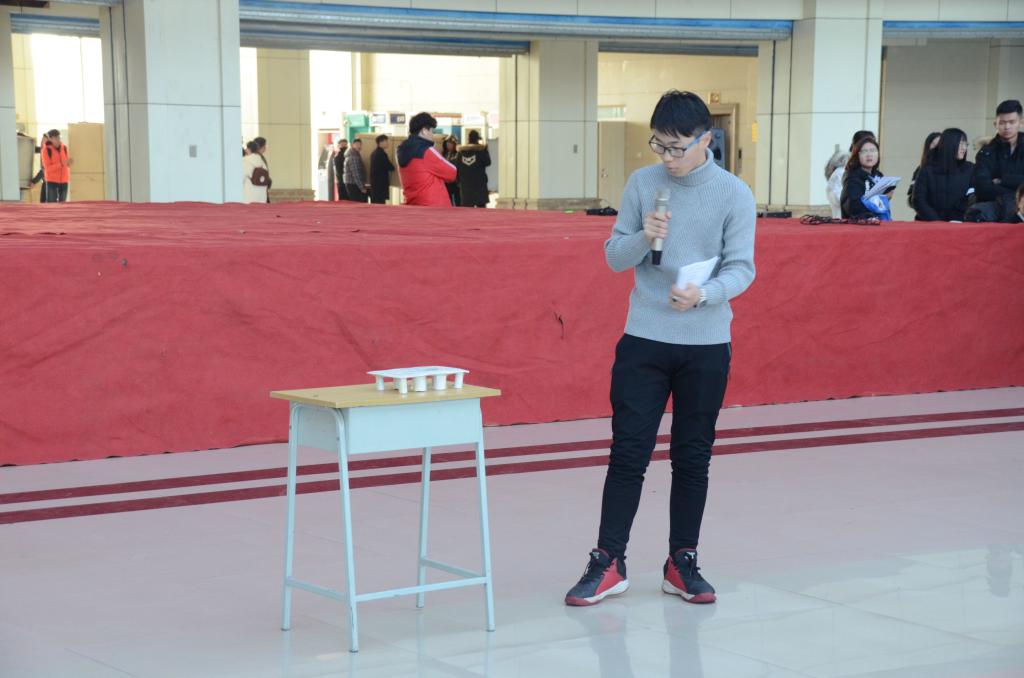 本次活动要求每院一个参赛作品,比赛分为两个部分,首先由各院活动负责人介绍参赛作品,并由评委为作品形象打分。第二环节,由演示同学向纸桥施加重物,在增加重物的过程中,纸桥如发生变形、侧倒或坍塌,则视为失败。各院都展出了学生自制的精美作品,并现场进行了承重展示。现场观众屏息凝神地关注着每一个作品。