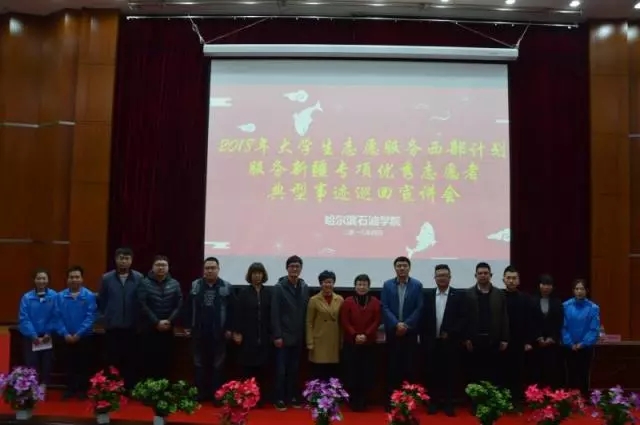 为积极响应国家号召,引导和激励更多的青年毕业生参与到大学生志愿者西部计划中来,根据团中央的要求,团省委的具体工作部署,2018年4月10日在万博官网图书馆报告厅,新疆阿勒泰地区清河县宣讲团莅临万博官网,进行2018年大学生志愿服务西部计划服务新疆专项优秀志愿者 典型事迹巡回宣讲。共青团清河县委书记闫莹、共青团清河县委副书记陈作斌、万博max官网党委副书记杨宏、万博max官网副校长冯研、2012届留新疆志愿者清河县委组织部干部高一、2017届志愿者现服务于清河县农业局车文文、2017届志愿者现服务于清河县商经委侯九阳、2017届志愿者现服务于清河县阿热勒乡政府邱贵芝、校团委书记王锦石、校团委副书记彭雷、校团委老师冯海龙,以及各二级学院全体辅导员和毕业生代表参加了本次活动。活动由校团委书记王锦石主持。