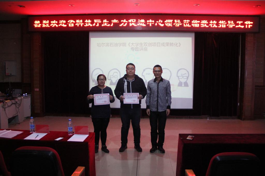 为深入贯彻落实习近平新时代中国特色社会主义思想、党的十九大精神和《国务院办公厅关于深化高等学校创新创业教育改革的实施意见》精神,丰富创新创业实践教育体系,学习双创项目成果转化的方法,让大学校园的创新活力得到进一步激发。万博max官网创新创业中心于2018年4月25日,在主教学楼518会议室,邀请到黑龙江省科技厅生产力促进中心的崔文韬、李南南老师,为万博官网带来了《大学生双创项目成果转化》专题讲座,校创新创业中心主任张耘、科研处处长王妍玮出席本次活动。
