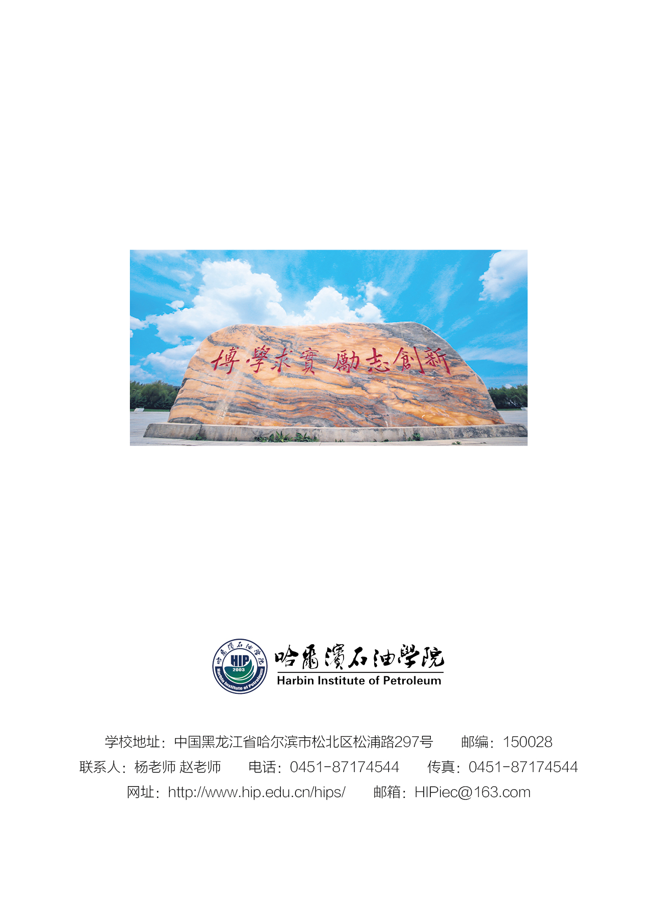 校址:哈尔滨市松北区松浦路297号 邮政编码:150028