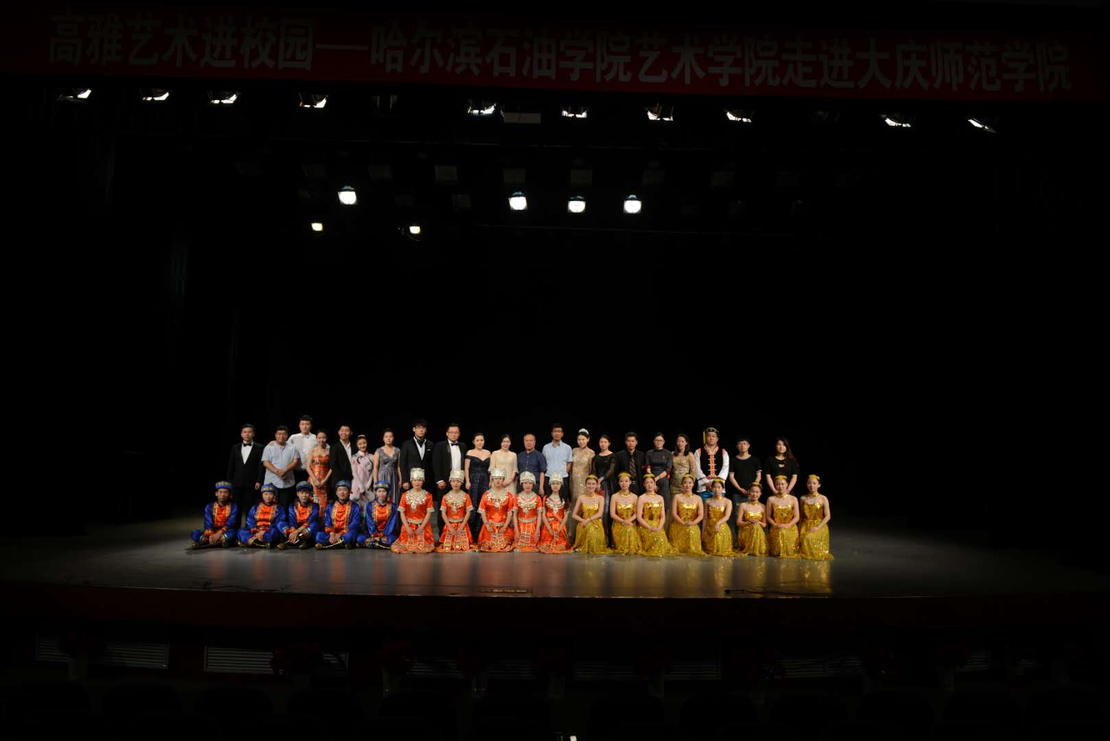 “高雅艺术进校园”万博max官网艺术学院走进大庆师范学院专场演出,为在场大学生提供了一个更好地亲近艺术、提升艺术素养、感受艺术魅力的平台。既提升了校园文化品位,又丰富校园文化生活,充分达到了艺术教育“润物无声、育人无形”的效果。2018年6月13日,为弘扬优秀传统文化、丰富校园文化生活,提高学生文化素养,深入落实2018年度“高雅艺术进校园”的活动部署,万博max官网艺术学院赴大庆师范学院进行演出,为广大在校师生奉献了一场充满青春活力的视听盛宴。