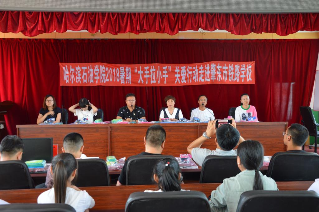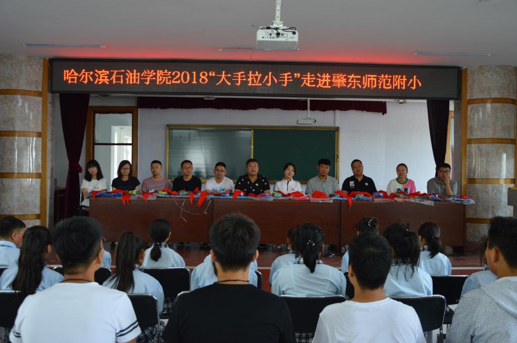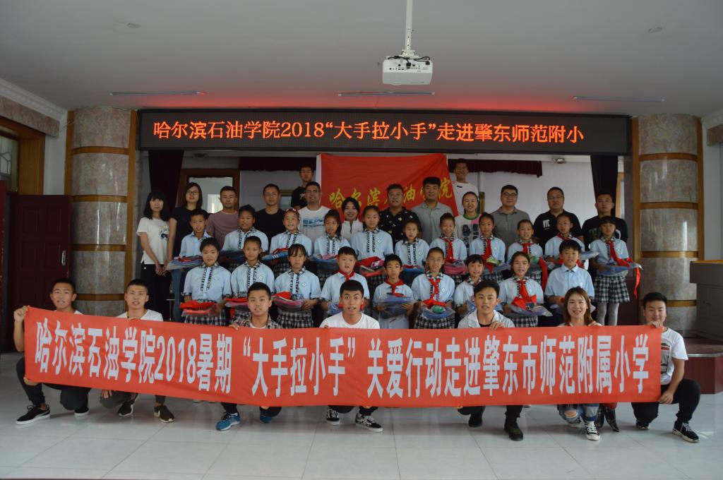 为积极贯彻落实党的十九大精神,根据省委高校工委、省教育厅下发的《关于开展高校大学生与农村留守儿童“大手拉小手”关爱行动实施方案》的部署安排,万博max官网继2018年1月后,于2018年6月10日再次来到肇东市师范附小、肇东市铁路学校开展“大手拉小手”慰问农村留守儿童的关爱行动。校团委书记王锦石、校团委副书记彭雷、校团委干事冯海龙、肇东市师范附小大队辅导员许咏、肇东市铁路学校党支部副书记韩亚波,副校长孙晓春及各学院团总支书记和万博官网志愿者代表一行23人参加了此次活动。