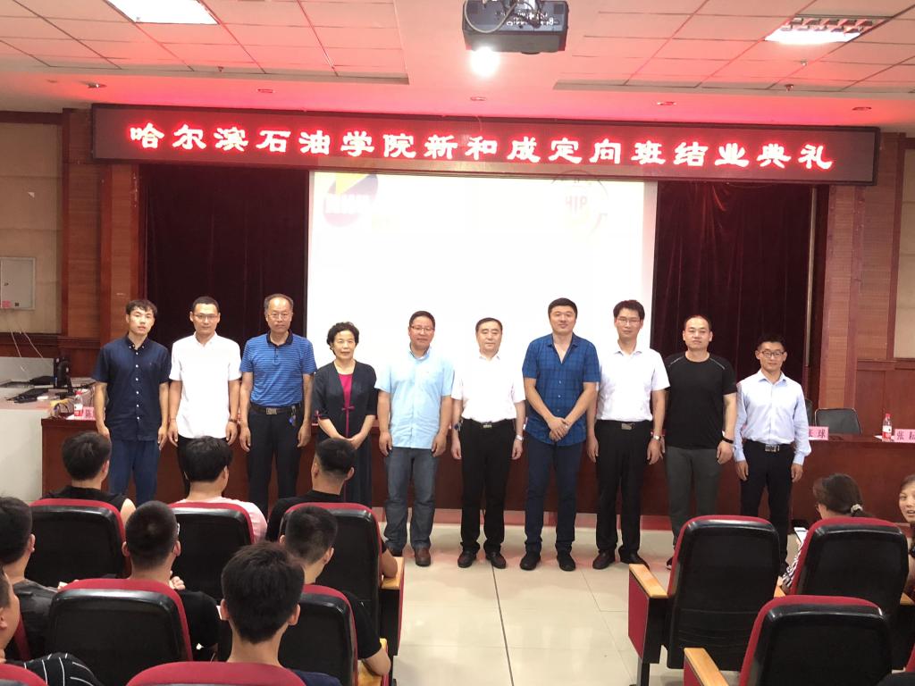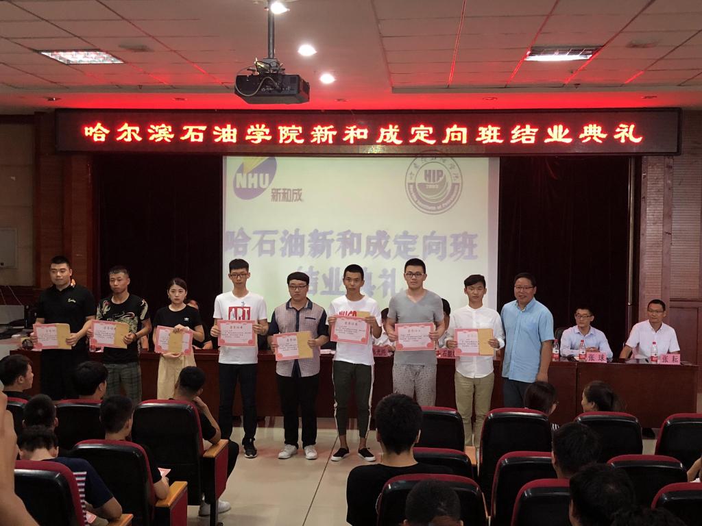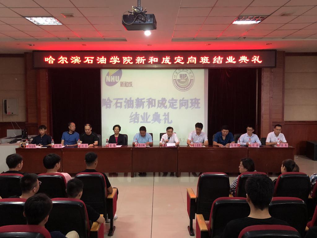 2018年7月11日上午,“新和成定向班”结业典礼在主教518活动室举办。万博官网党委书记焦光纯、浙江新和成有限公司黑龙江分公司副总经理陈召峰、副校长栾敏、副校长冯研、化工学院院长刘波、校企合作与发展办公室主任张耘、招生就业办副主任陈旭辉以及各有关二级学院的领导、老师出席了本次典礼,陈旭辉同志主持本次典礼。
