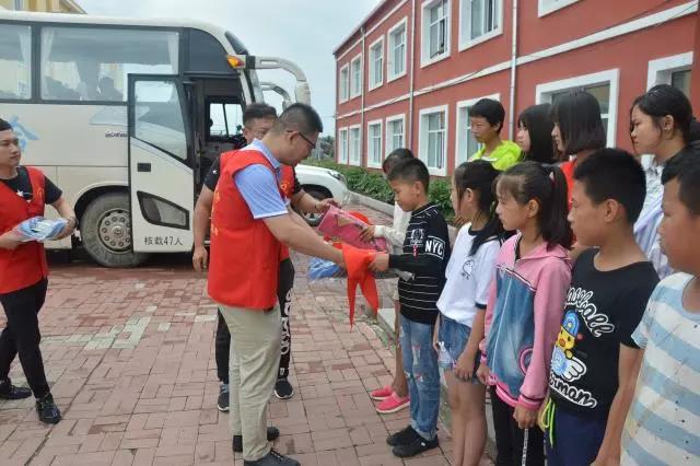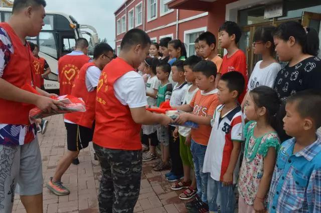 为孩子们发放慰问品