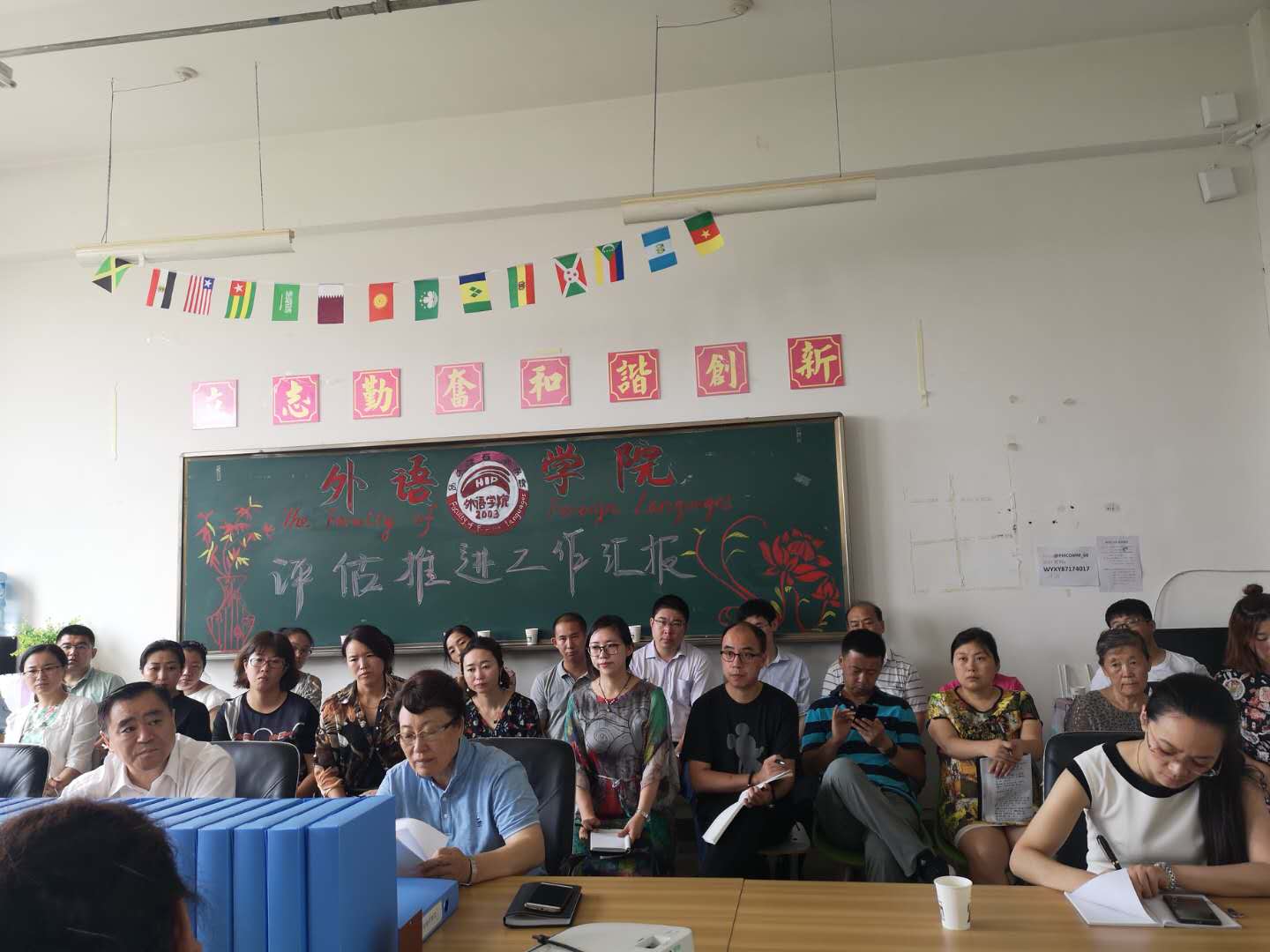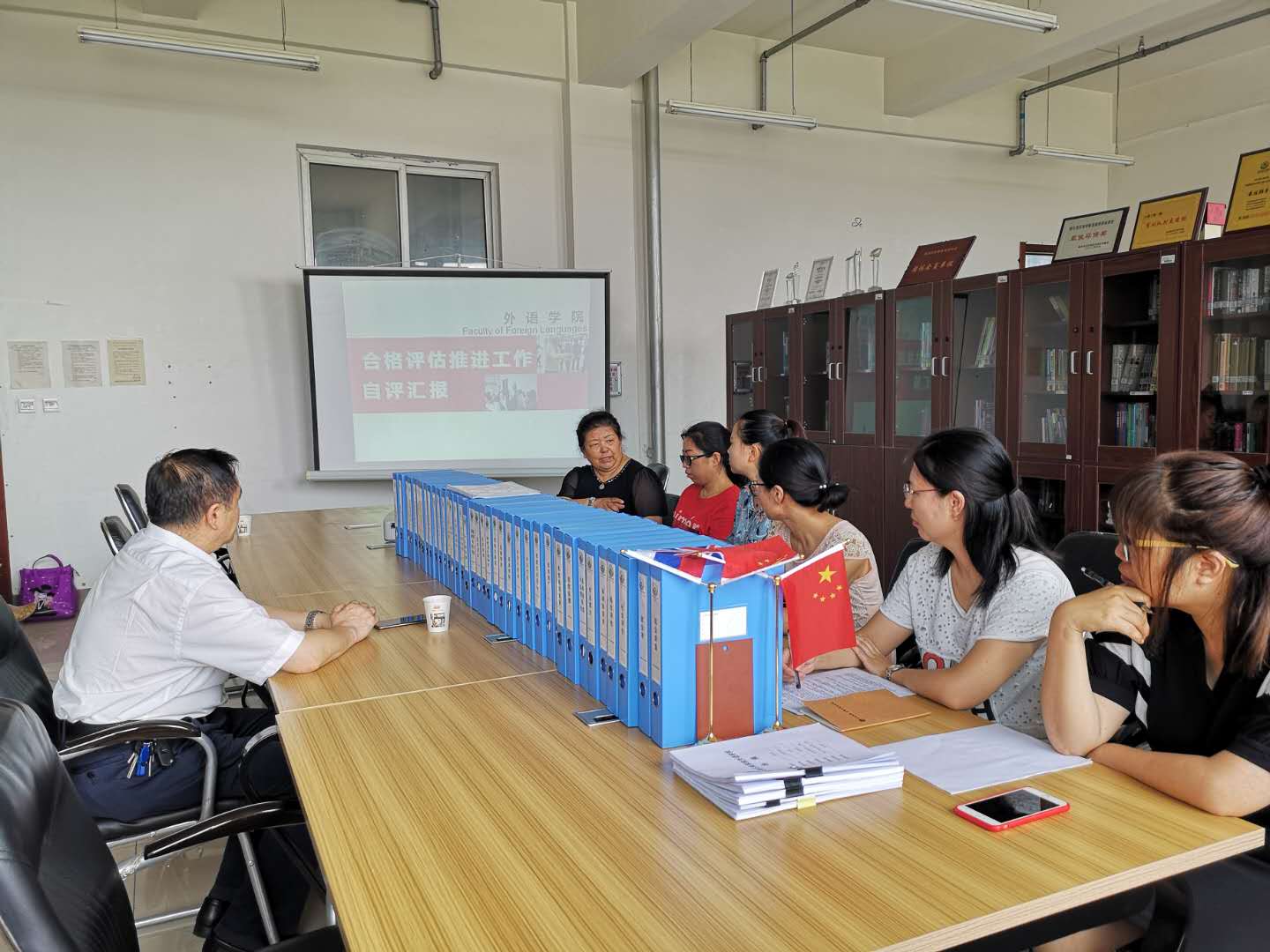 与会的领导和老师们纷纷提出了自己的问题和想法,同王院长和外语学院的迎评工作领导小组成员们进行了热烈的交流。