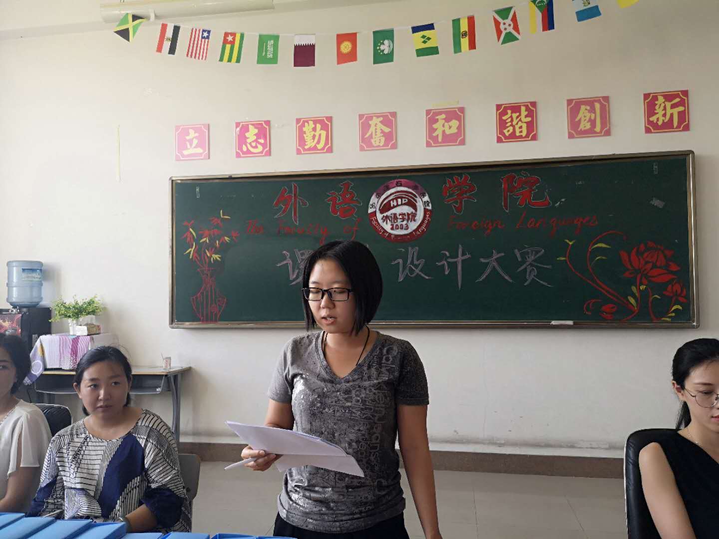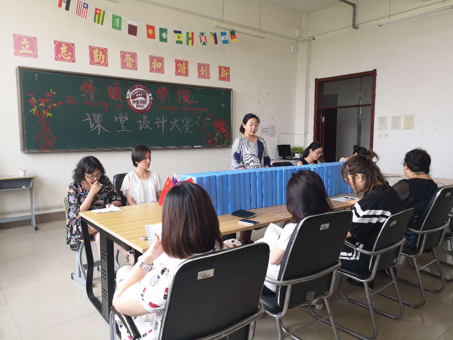 为推动学校教育教学改革创新,提高教师教学水平,促进多种教学方法在教育教学中的综合应用,引导全校教师以新时代教学理念为指导,以课堂教学设计为核心,创设真实教学情境,切实提高教学效果,根据外语学院教师教学能力培养的工作安排,7月15日下午,外语学院2018年度课堂设计大赛在主教515举行。全院教师都参加了此次决赛。