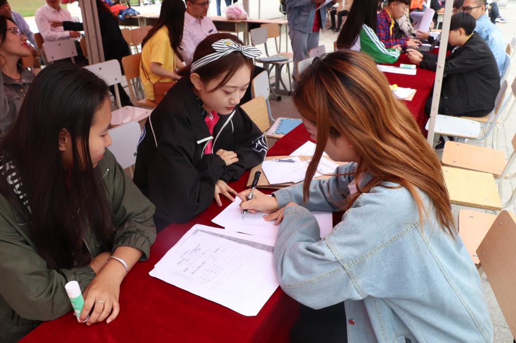 在“扎满人堆”的各学院登记报到地点,也都有着不一样的迎新创意,用着属于自己学院的独特魅力表达着对新家庭成员的热情。
