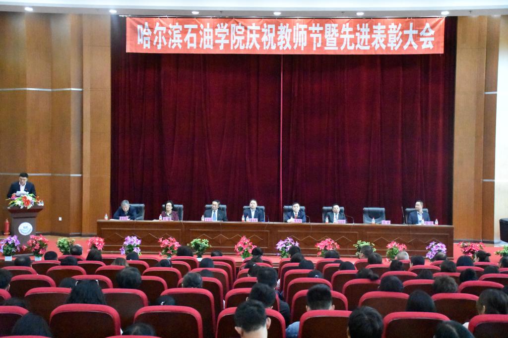 理事长、校长谢永利教授代表学校向一直以来默默耕耘、无私奉献的每一位哈石油人致以节日的问候和衷心的感谢!向今天受到表彰的先进集体和个人表示热烈的祝贺!