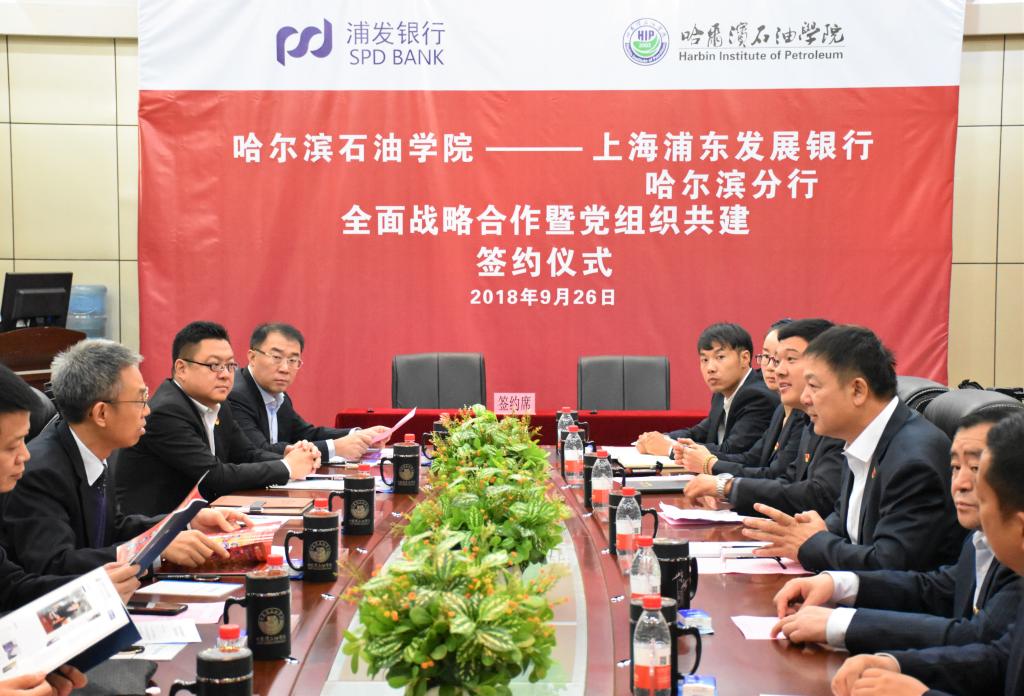 2018年9月26日,万博官网与上海浦东发展银行哈尔滨分行举行全面战略合作暨党组织共建签约仪式。这标志着万博官网与浦发银行的合作又迈上了一个新的台阶,同时也为双方全面战略合作开启了新的起点。上海浦东发展银行哈尔滨分行党委书记、行长李连全,党委委员、副行长陆韬及相关业务部门负责人,万博官网理事长、校长谢永利,党委书记焦光纯,副校长冯研及相关部门负责人参加签约仪式。