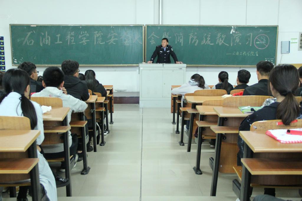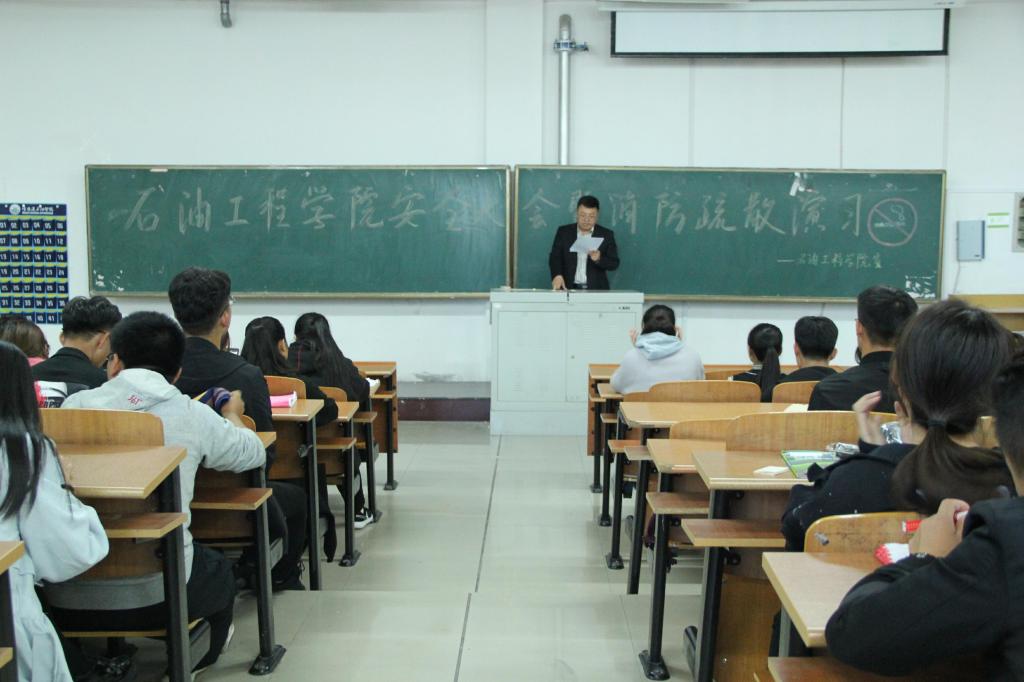 为切实增强新生的消防安全意识,提高新生面对火灾突发事件时的疏散与自救能力,维护校园平安稳定。石油工程学院于9月25日上午10点10分,在主教学楼501教室,召开新生安全动员大会暨消防疏散演习。学院党总支副书记康平军兼2018级辅导员主持召开本次大会,校保卫处王岗老师应邀参加了本次大会,并组织现场疏散,指导学生如何使用灭火器和消防栓。