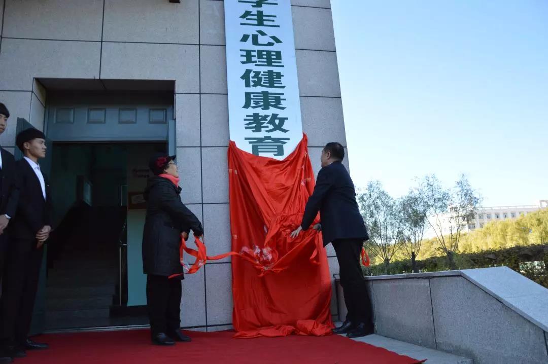 2018年10月18日中午12:00,万博max官网图书馆前欢声笑语,喜气盈盈。大学生心理健康教育与咨询中心在这里举行揭牌仪式,万博max官网党委书记焦光纯、副书记杨宏为“大学生心理健康教育与咨询中心”揭牌。