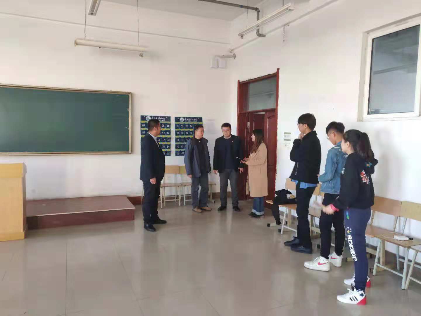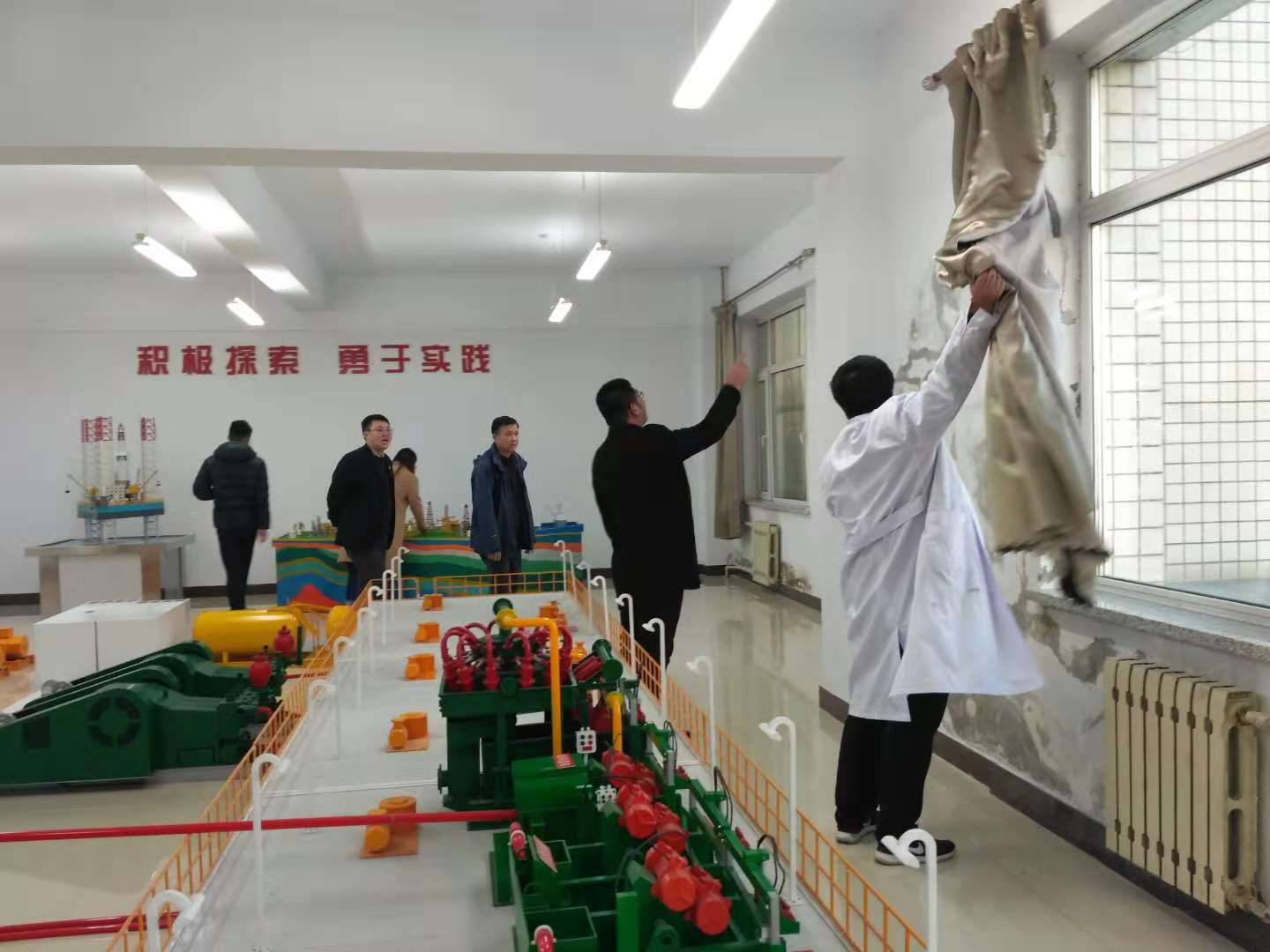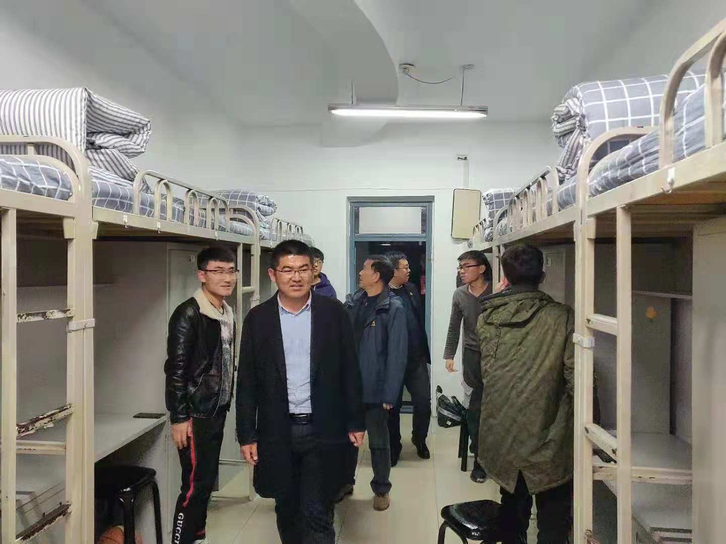 首先领导们对全院教室的卫生清扫情况以及墙面、桌椅、多媒体设备等进行了检查,同时对全院各办公室的卫生及物品摆放情况进行了检查。随后,领导们来到二实验楼,我院实验中心主任刘鑫向领导们详细汇报了实验中心的准备情况,领导们对每一间实验室进行了彻底的查看。最后领导们来到石油工程学院学生公寓,检查了寝室的卫生状况及寝室文化布置,向学生们传达了文明校园创建的重要意义,与同学们进行了亲切的交谈。
