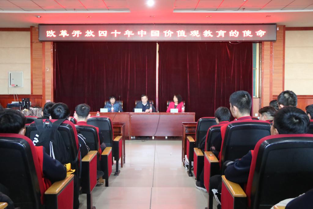 本次活动邀请了吉林大学马克思主义学院副院长、博士生导师吴宏政教授为万博官网师生进行了题为《改革开放40年中国价值观教育的使命》的报告会。校党委书记焦光纯出席了报告会并致辞。思政部、科研处、宣传统战部和学工处等部门领导、教师以及部分学生代表聆听了此次报告会。