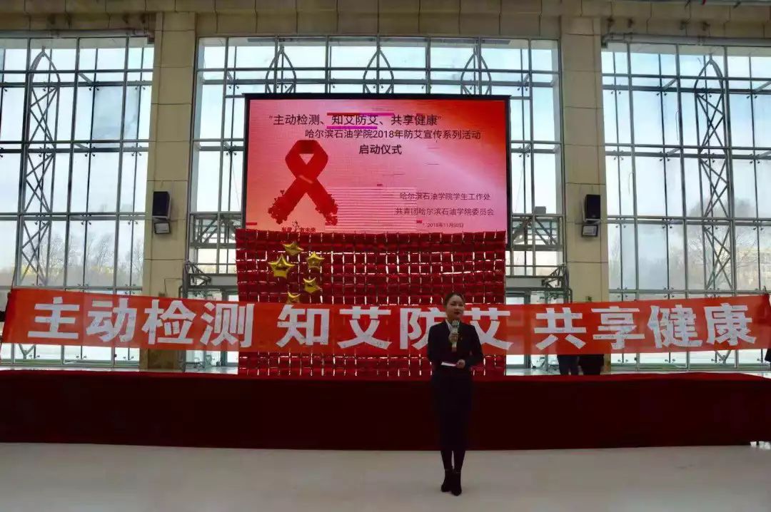 为进一步落实《教育部办公厅关于做好2018年“世界艾滋病日”宣传活动的通知》不断推进“师生健康 中国健康”主题健康教育活动和学校艾滋病防控工作,营造师生积极参与艾滋病防治工作的良好氛围,2018年11月30日中午12:00,预防艾滋病宣传系列活动启动仪式在万博官网主教学楼阳光大厅举办,本次仪式的主题为"主动检测 知艾防艾 共享健康"。莅临此次活动的领导有校学工处、团委全体成员及各二级学院书记、副书记、辅导员,参加此次启动仪式的还有各学院班级心理委员、大学生心理协会成员。