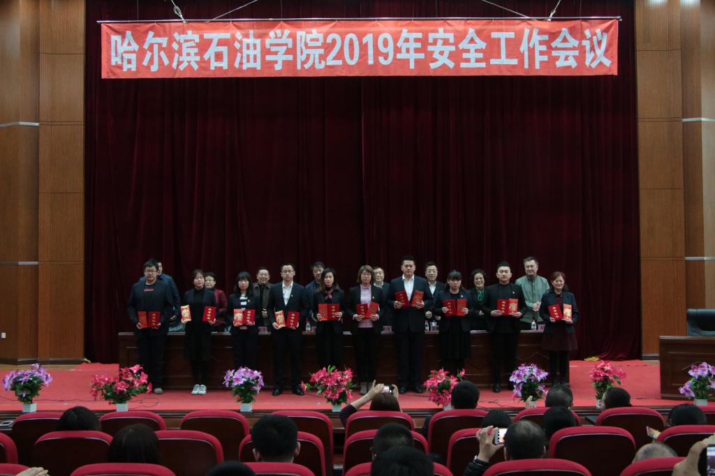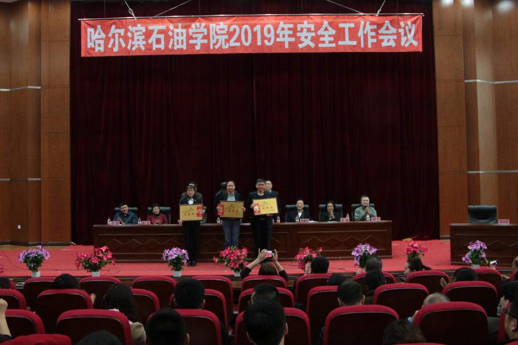 党委副书记杨宏同志宣读了《万博max官网关于表彰2018年度安全稳定工作先进单位及先进个人的决定》,校领导为获奖单位和获奖个人颁奖。安全工作先进集体代表图书馆办公室主任姜薇和先进个人代表土木工程学院团总支书记李培育分别做了交流发言。