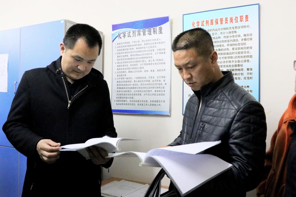 会后,检查组来到实验中心药品库进行了实地勘查和验看,对危险化学品的管理进行了全面细致的检查。通过检查,检查组认为万博官网对于危化品管理到位,制度健全,设施完备,安全状况良好。同时对一些不足之处提出宝贵建议。