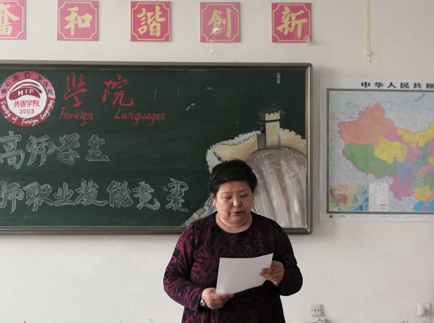 "全国高师学生英语教师职业技能竞赛"由全国高等师范院校外语教学与研究协作组与国家基础教育实验中心外语教育研究中心联合举办。2018年全国高师竞赛分为初赛、决赛两个环节。比赛对象为本科一、二年级学生及专科学生,本科三、四年级学生及硕士研究生。经过严格的评选,外语学院的陈蕾,喻聪和宗琳三位同学在初赛中脱颖而出,代表万博官网参加在黑河学院举行的决赛。2018年12月8-9日,在外语学院邹丹老师的带领下,三位同学在决赛中表现出色,取得了优异的成绩。与此同时,外语学院王莉娅院长在黑河学院参加了第八届黑龙江高师院校外语教学研究协作组会议,本次会议审议并通过了新一届黑龙江省高师院校外语教学研究协作组领导机构,推举高师英语教师技能大赛决赛专家评委并建⽴专家库。王莉娅院长再次当选专家评委。